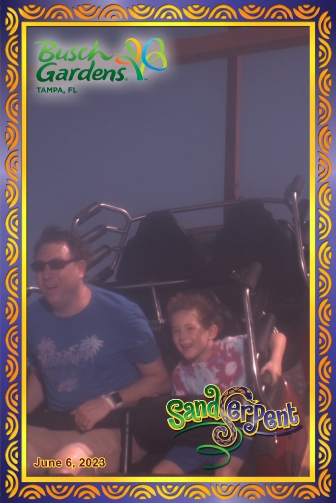 I let my son know that they might be closing Sand Serpent and he essentially broke down in tears because he might never be able to ride it. We live slightly north of Atlanta, so a trip to the park isn’t an easy afternoon drive, most of the time there are vacation days and hotels involved even though we have season passes. However, we pledged that even though it may require a plane flight or a crazy drive we’d get him on it assuming Busch Gardens gave a little notice. Last week I was lucky enough to be in Orlando for work and we extended a day to make the trip to Tampa on a hot summer day, essentially to ride Sand Serpent and Thomas got his rides!