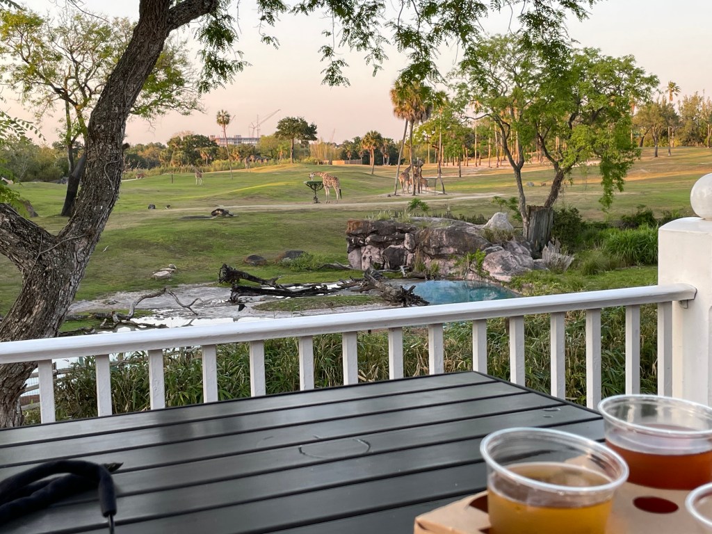 The final major permanent beer spot is the Giraffe Bar near to the Serengeti Overlook and Cheetah Hunt. We wrote a whole blog about the Giraffe Bar, so this will be light on details. In summary though, great views like the one below along with a good selection of craft beers on tap that you can get as part of a couple of beer flights and some great appetizer style eats to enjoy with it. Having a great craft beer while on a patio watching either giraffes on the Serengeti one direction or a roller coaster the other direction is pretty tough to top.