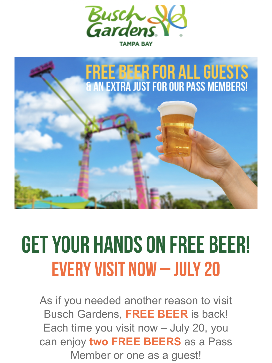 Beer and Busch Gardens just seem to go together. We’ve written in the past about the history of the parks, their onsite breweries and ties to Busch Beer. The one sentence summary is there used to be a big Busch brewery near where Iron Gwazi is today and the park was originally started to help market the beer. Today, however, we will focus more on the modern connections with the locations and types of beer you can find around the park.