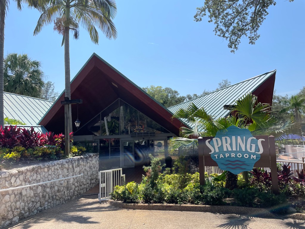 The first locale is the newly remodeled Springs Taproom. This place is essentially dedicated to getting an ice cold beverage. There are soft drinks and a handful of snack options available, but basically think of this place as a Busch Gardens Bar. It’s in a quiet corner of the park just after Iron Gwazi, but before Sesame Street and is slightly set back from the main path. On a hot summer day stepping into the AC here can be a great relief too. There’s some outdoor seating here as well along with some really pretty water features and landscaping surrounding it.
