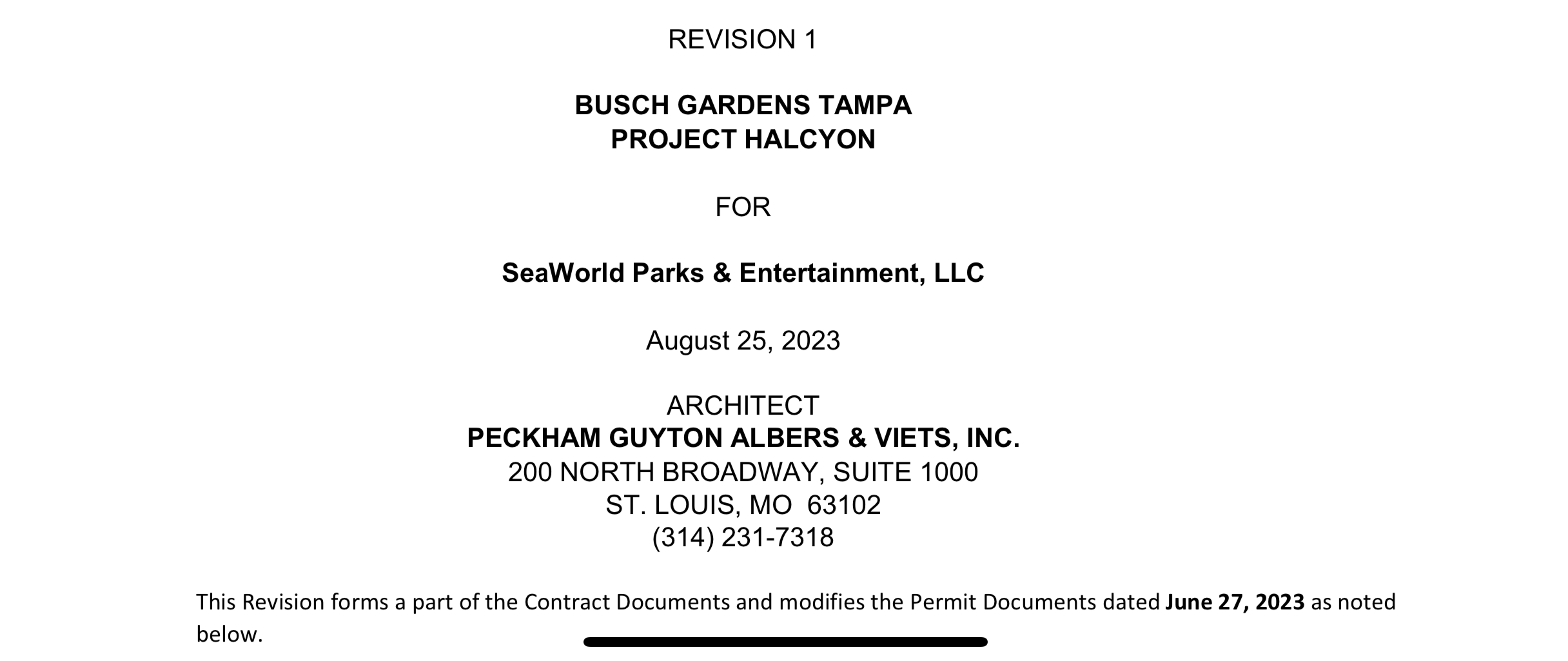 The code name for the Busch Gardens Sand Serpent replacement is Project Halycon. This project is not just taking the old Sand Serpent plot of land, but a huge part of Pantopia. Although there have been no official announcement about a replacement, clues can be drawn from permit filings about what the park is up to. You can see from the permit revisions below that there is a locker area proposed and there is also a test seat involved. It also mentions a station! Thanks to Penguin_Master23 on Parkfans.net for finding this on the Accela Database which is a wealth of information for building permits searching under the park’s name or address.