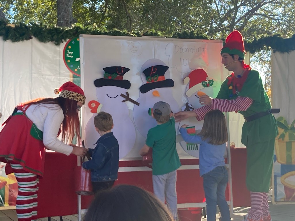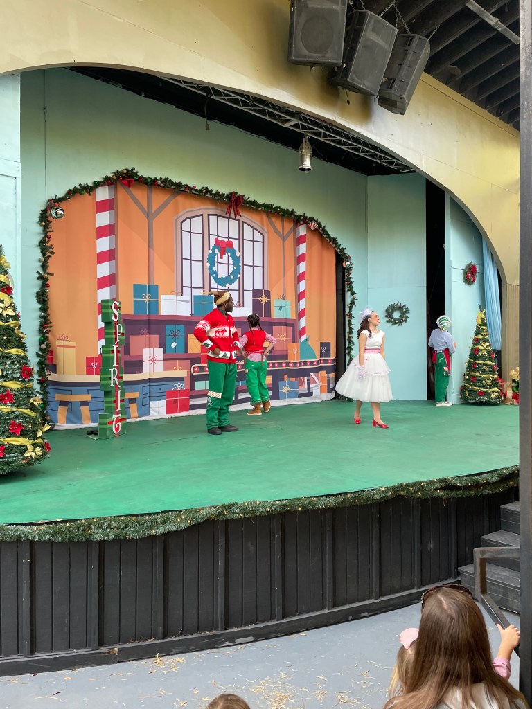 During the daytime events included several Christmas shows that ranged from a fun short musical to an elf training academy. At night there was a puppet show and a nativity show. We made it to everything other than the nativity and these were all really well done and fun for all ages with many of them being interactive getting the kids on stage to be part of the show. There was live music at Brews & Bites during the afternoon too.
