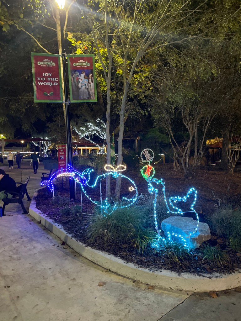Even though it’s Christmas season the rest of the park is still in full swing (understandably minus the water park and water rides). Wild & Bright really just adds a ton of new things to do (or eat) on top of all the other great attractions. This means you can still see all the awesome animal displays, get a ride on Boomerang or catch a beer at Water’s Edge Brews & Bites. Wild & Bright really just adds a ton of new things to do on top of all the other great attractions. The park also had so many subtle details that really added to the atmosphere from the dozens of picture spots all around to smaller light displays of things like palm trees scattered about.
