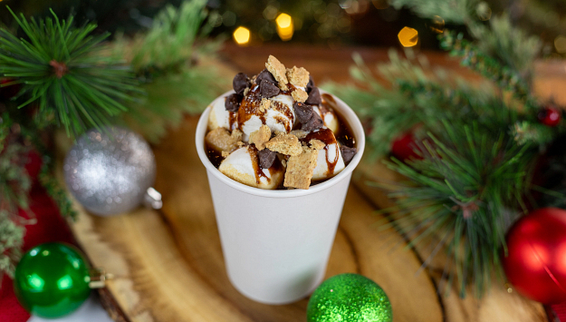 Then there’s the food, the many many choices of food. There were so many unique offerings and I think the Sugar Shack had some of the longest waits in the park. The park had Christmas Tasting cards which got you 5 items for $30 or you could buy them a la carte. Most of the choices slanted toward the sweet side rather than savory, but there were BBQ sliders, mozzarella bread sticks and a few other choices to balance out all the sugar. Some of the more unique items included funnel cake fries, a bunch of specialty beverages like s’mores coffee and even eggnog ice cream. This was all in addition to the regular food offerings at the park too. There’s even the chance to have brunch with Santa most weekend mornings (with reservations) prior to park opening. Speaking of Santa, at night at Santa’s Outpost there is free hot chocolate. I’m going to repeat that, there is FREE hot chocolate! How many times have you seen free anything at a theme park?