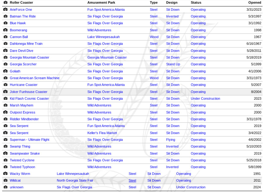 Below is the complete list for Georgia. On it you’ll see the last entry is “unknown” under construction. You know what that means? Until 2024, when there will be coaster #28 in Georgia with the new Ultra Splash Coaster at Six Flags Over Georgia!