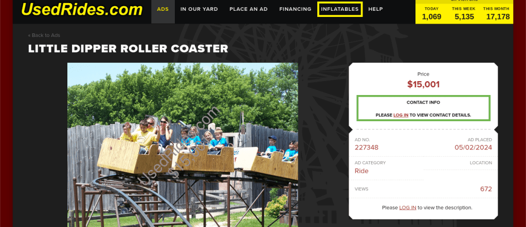 Scanning these sites is a lot of fun and sometimes you see stuff you may recognize, but often it’s more things you’d find at small local parks or traveling carnivals. However, a new listing from May 2024 on UsedRides.com caught my eye with the opportunity to own a roller coaster for just $15,000! It’s a steel family coaster called the Little Dipper, but it’s a legit roller coaster that could probably fit just about anywhere.