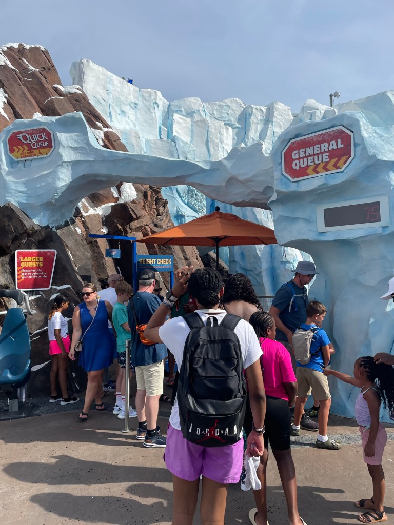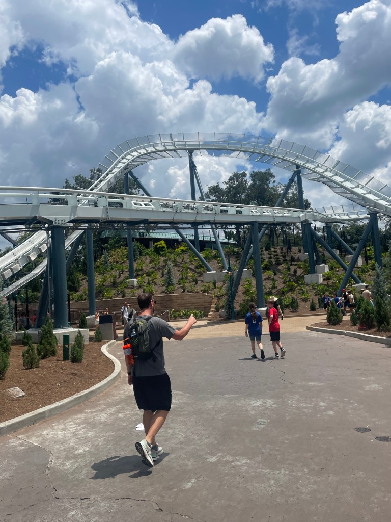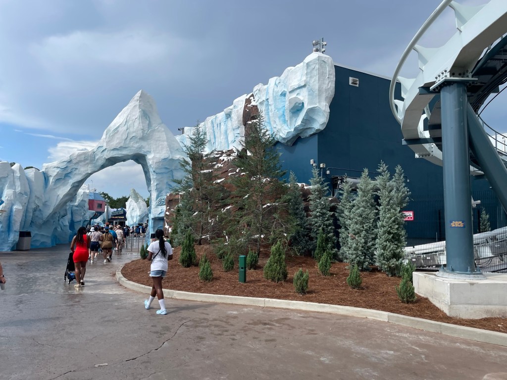 The ride itself is tons of fun. You start off going through what feels like a dark ride section with colored lights, music and screens that feel like a cave. This is about 30 seconds long which is pretty sizable with probably the best theming outside Atlantis you’ll find in the park. I believe much of this area are the remnants of the old dark ride which are recycled very well here. You then launch outside, up a hill and into your first series of banked turns. The launch uphill is fast, but not so forceful that you’ll be reminiscing about the former Lightning Rod launch at Dollywood. The ride twists and turns some more through some s-turns and bank turns along with some small hills that didn’t really produce any airtime in my 3rd row seat. You then hit a second launch and do it all some more. There’s no real signature element, but it feels fast and it’s fun and you zig and zag all over Antarctica before returning to the station.