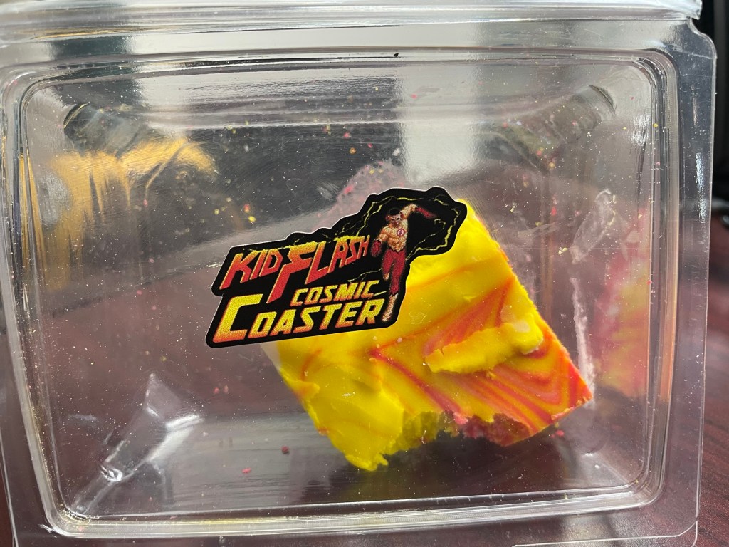 On opening day I got some fudge themed to Kid Flash. For whatever reason I never ate it and ran across it the other day. My sincere hope is that the opening day fudge doesn’t outlast the ride itself. Here’s hoping that Six Flags and Skyline can be patient and work together to get Kid Flash operating regularly again.