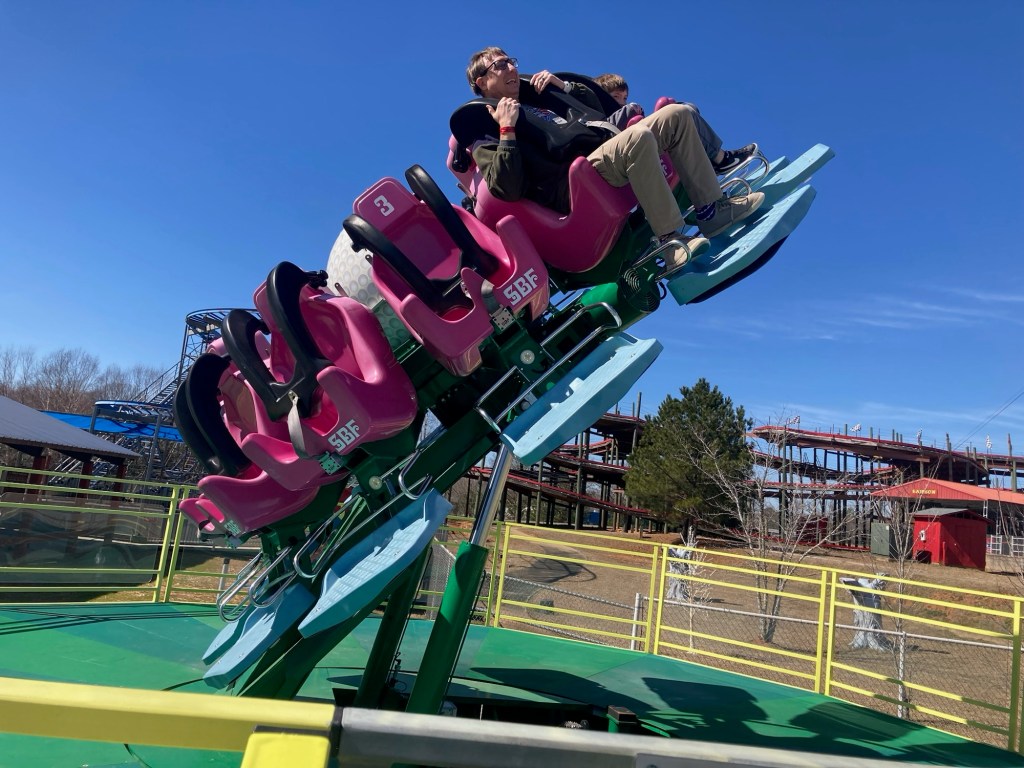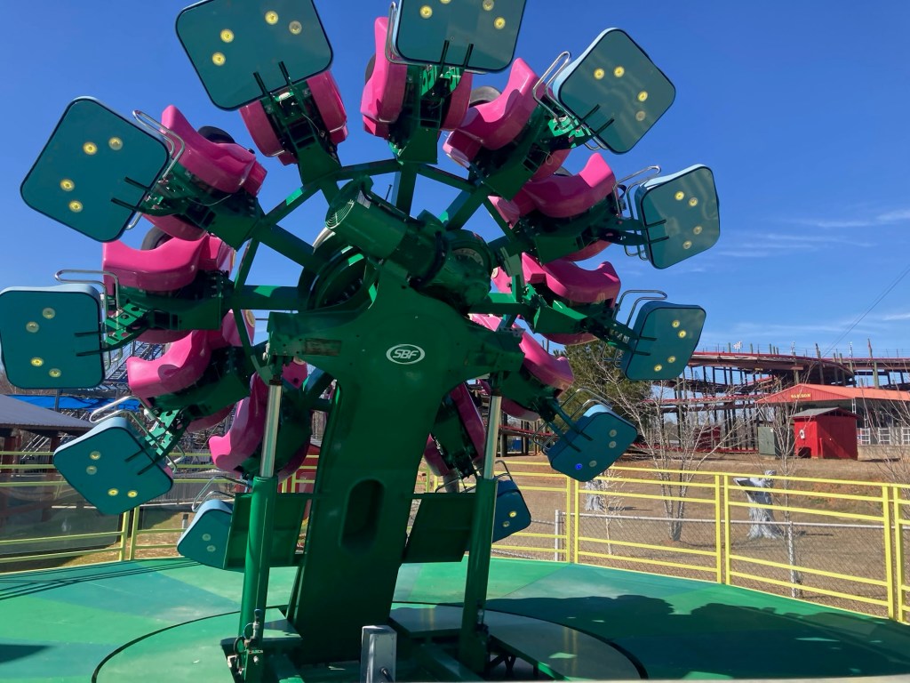 Fun Spot America Atlanta in Fayetteville, Georgia has opened its new “Hook & Slice” ride. The exciting new attraction, a Mini Reverse Time ride by SBF-Visa Group, delivers high-energy fun and excitement for riders with great visuals for spectators. The ride officially opened on February 1, 2025 and we had the opportunity to ride on February 21st which was a beautiful spring day in Georgia. Our bottom line review, “Hook & Slice” may not be a physically large ride, but it packs a ton of fun in a small footprint.
