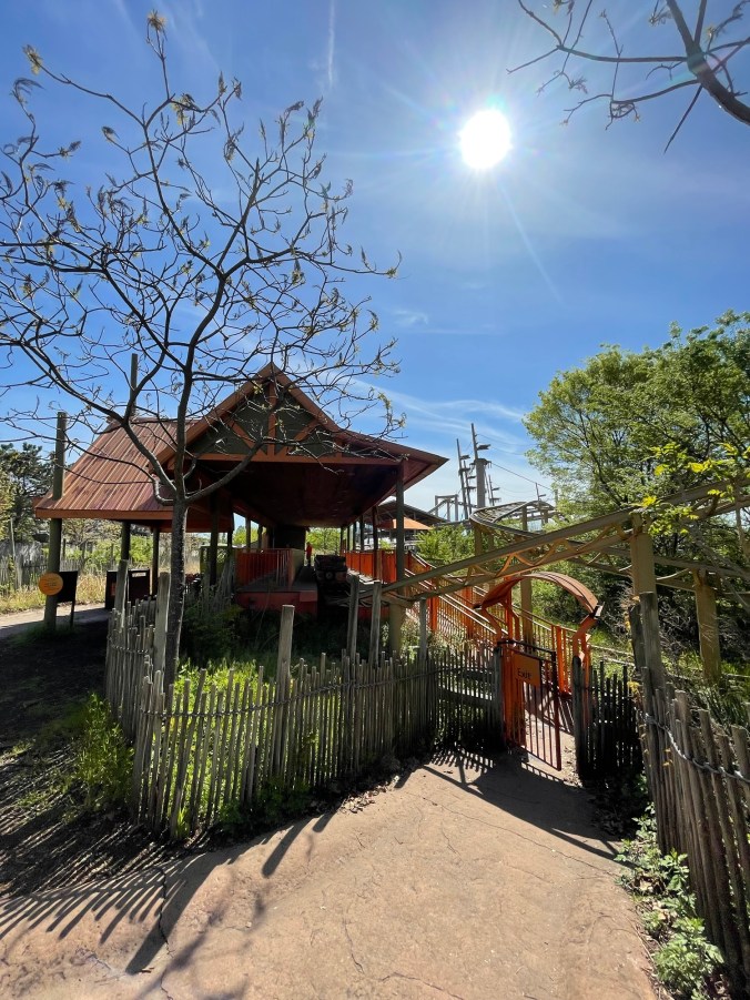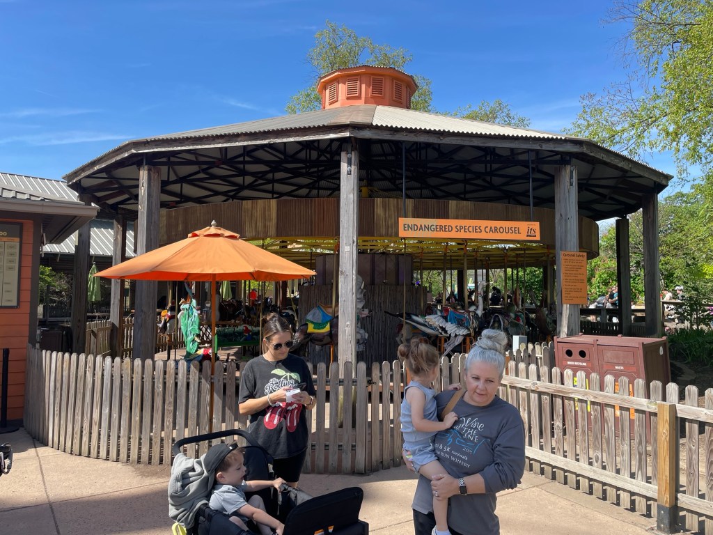 If you’re just here for the rides, there are 3 other rides at the park, however one of them is currently closed due to construction. There’s of course a train, because I think it’s got to be a rule that every zoo has a train or so it seems. There’s also a carousel, another common staple at zoos, but this one is called the “Endangered Species Carousel” and themed as such. The final ride is the Skyline transporter ride. It is currently closed for what appears to be construction near some of its supports, but not actual construction on the ride itself. This ride soars over a whole section of the park hanging from elevated track from gondolas. It looks great and I’m sad I didn’t get a chance to experience it and it runs right near Kombo with their loading stations essentially being neighbors. I’m sure you get some great coaster and animal views from up there.