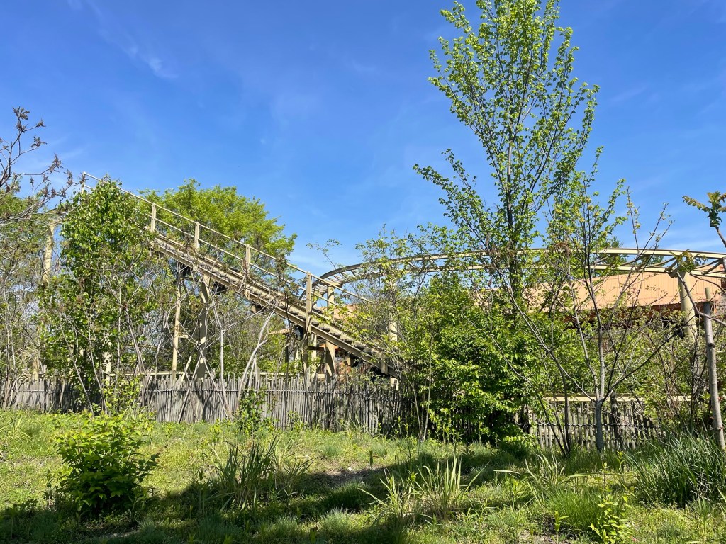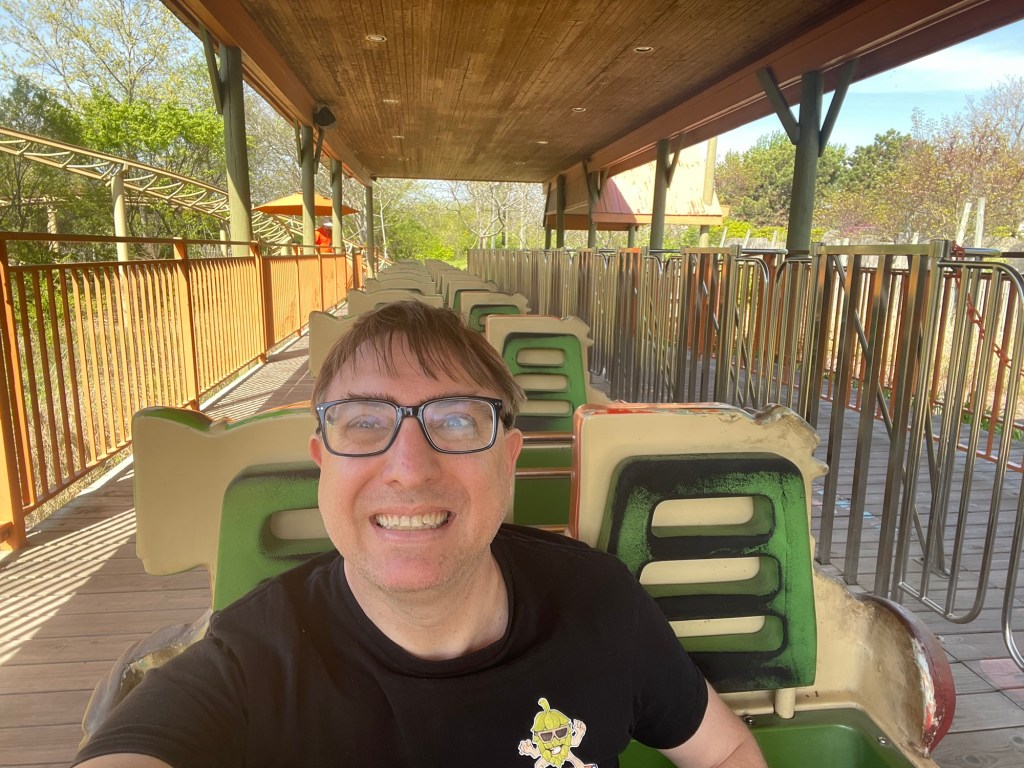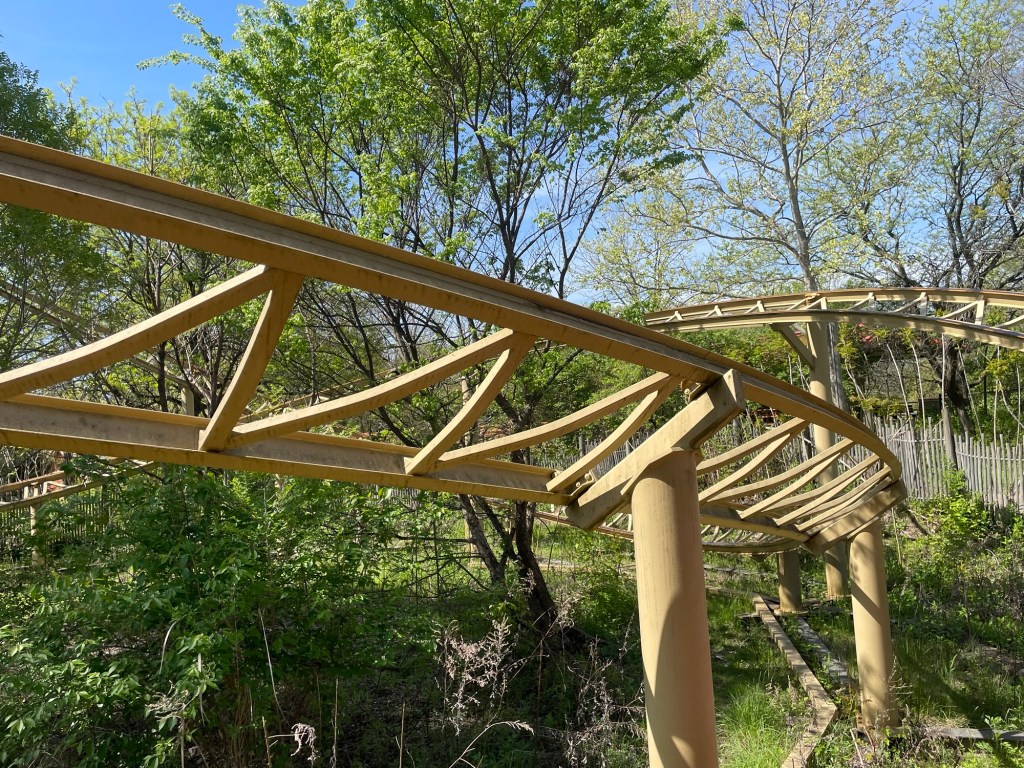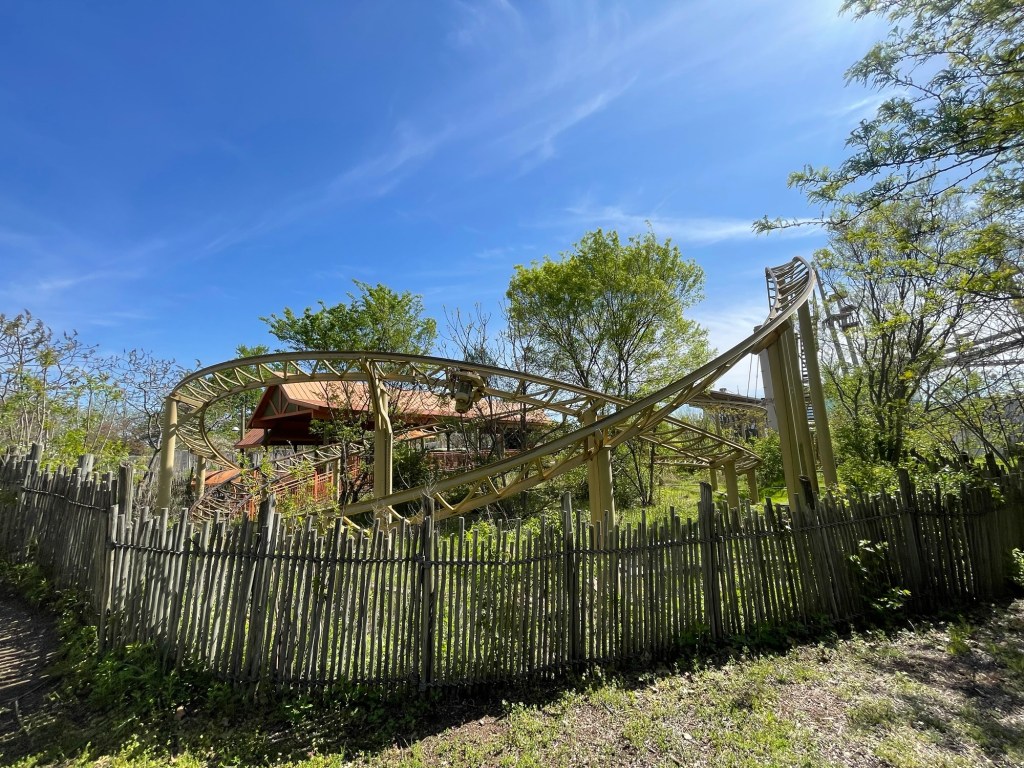 The Kōmbo Family Coaster at the Indianapolis Zoo is a highly unique family coaster by Zierer opened in 2001. At 24 feet in height and 21 mph on 656 feet of track Kombo’s stats from the zoo’s website won’t wow anyone, but it’s spectacular attention to theme and a few neat quirks make it a unique and fun offering in a surprising place. The day I went was a “school” day and so the park was pretty empty meaning I got one of the first “zen” rides (only rider on the train) I can remember in a long time.