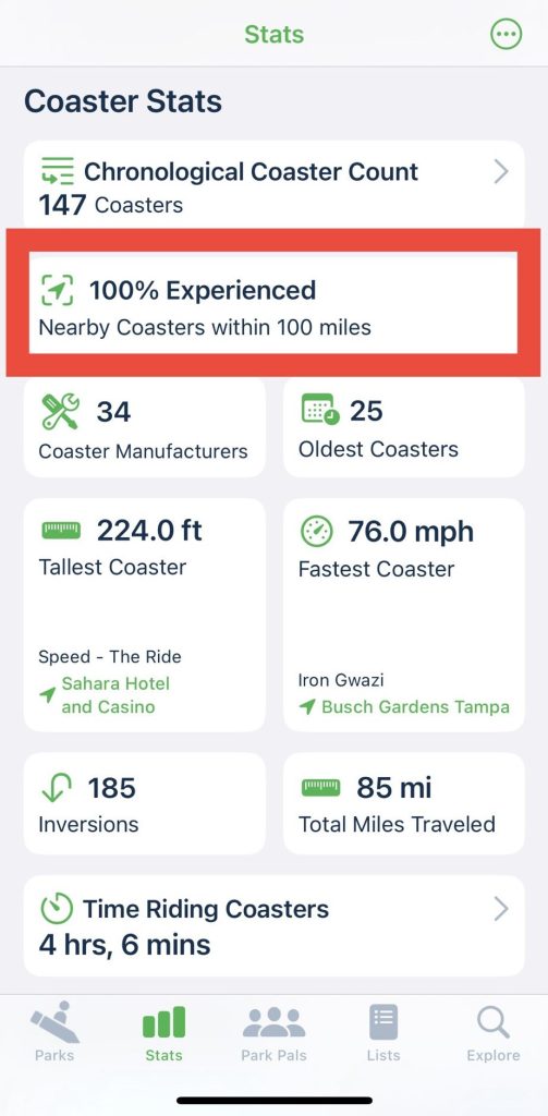 Not only can it track ride experiences, but it can also track health related stats like your mileage and steps inside of theme parks. This way you’ll know how your roller coaster habit may be leading to better health! I was shocked at my first complete year end review of 2023 where I walked 174 miles in theme parks and If you add it all up from 2022-2025 I’m approaching 500 miles!