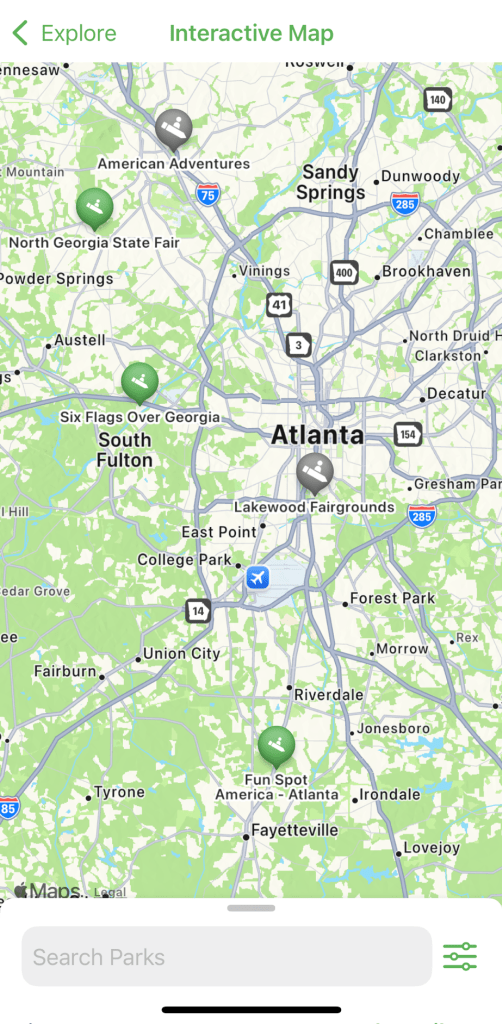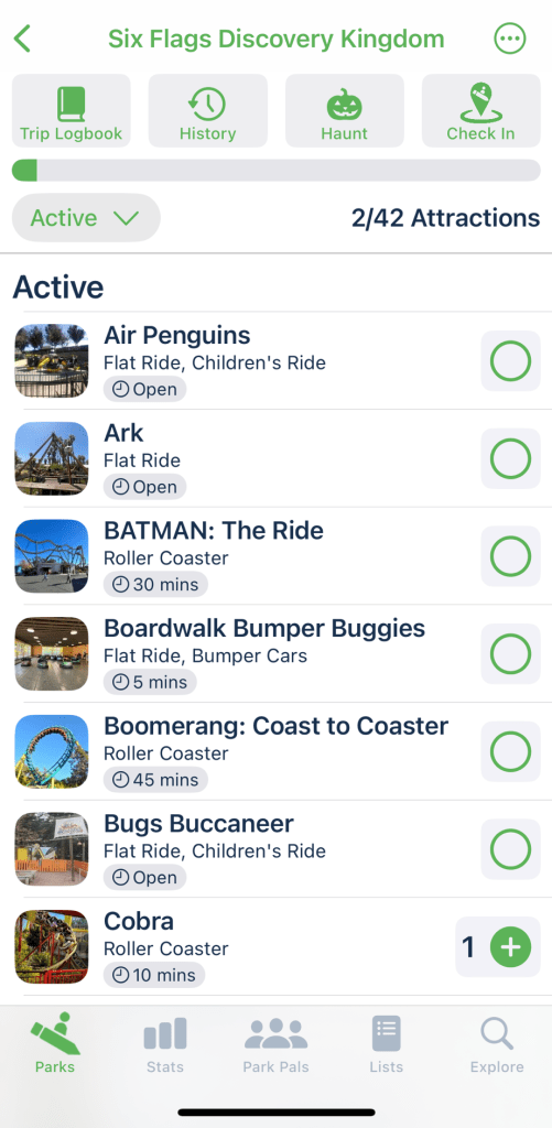 The app is also great for new park and ride discovery. One of my favorite features is “Coasters within 100 miles” where the app will automatically give you a list of all coasters within that radius. I find myself checking it when I’m on a business trip or a vacation to see what might be nearby. You can also use the interactive map to find parks and rides literally worldwide.