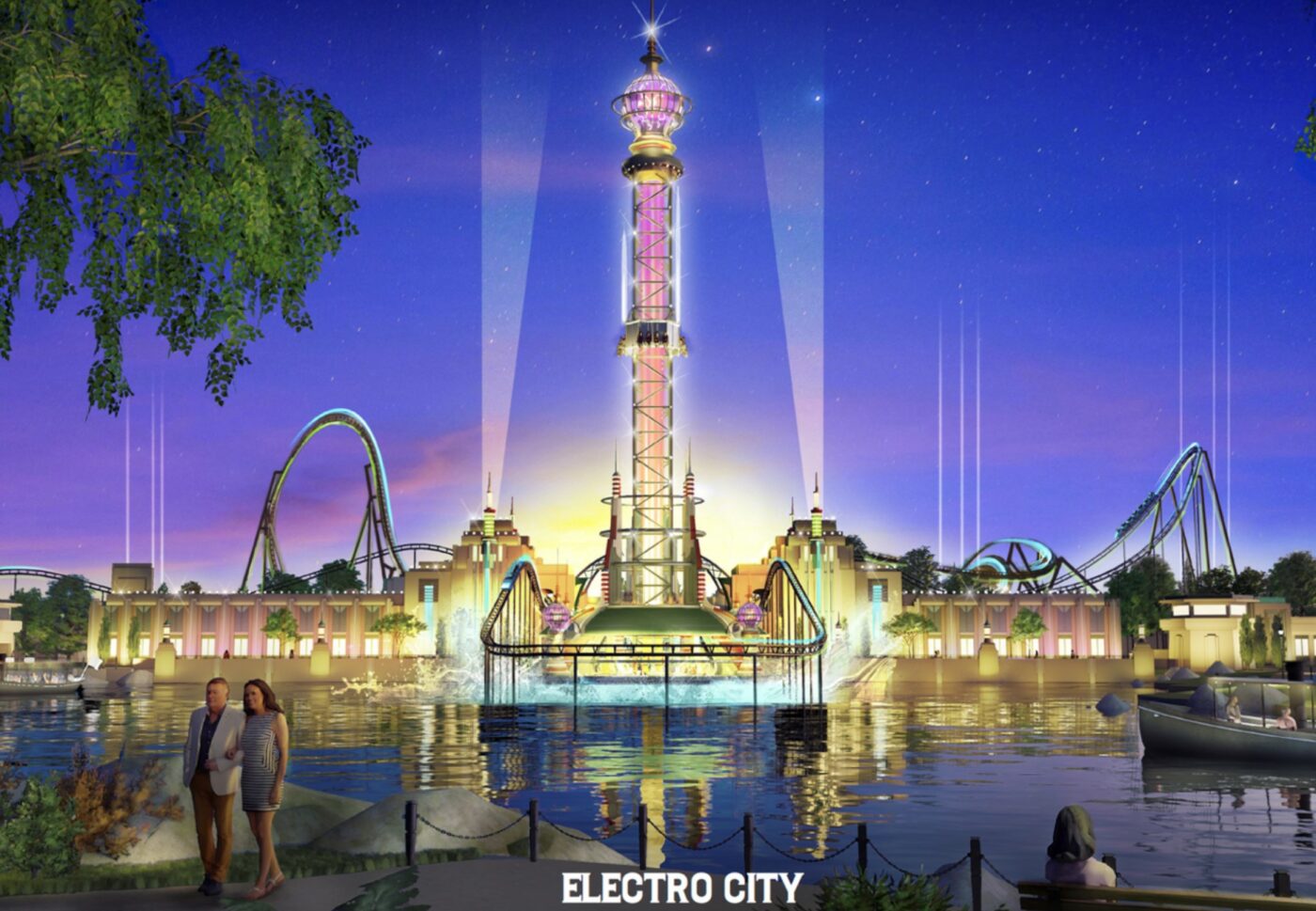 The original announcement for the park came in 2023 and the renderings looked promising. The park’s leadership included former Disney Imagineers and was meant to be in the mold of a Disney park. It was to have six themed lands of Liberty Village, Great Plains, Bayou Bay, Big Timber Falls, Stony Point Harbor, and Electropolis. The park even was selling merchandise on its defunct website including logo t-shirts.