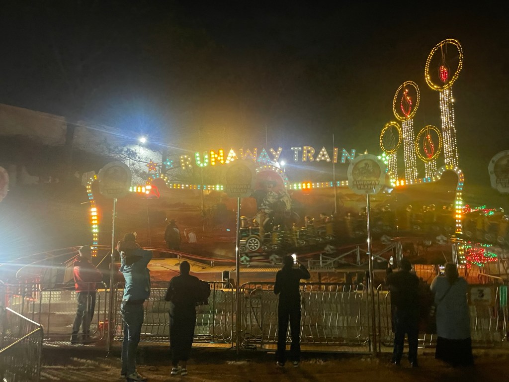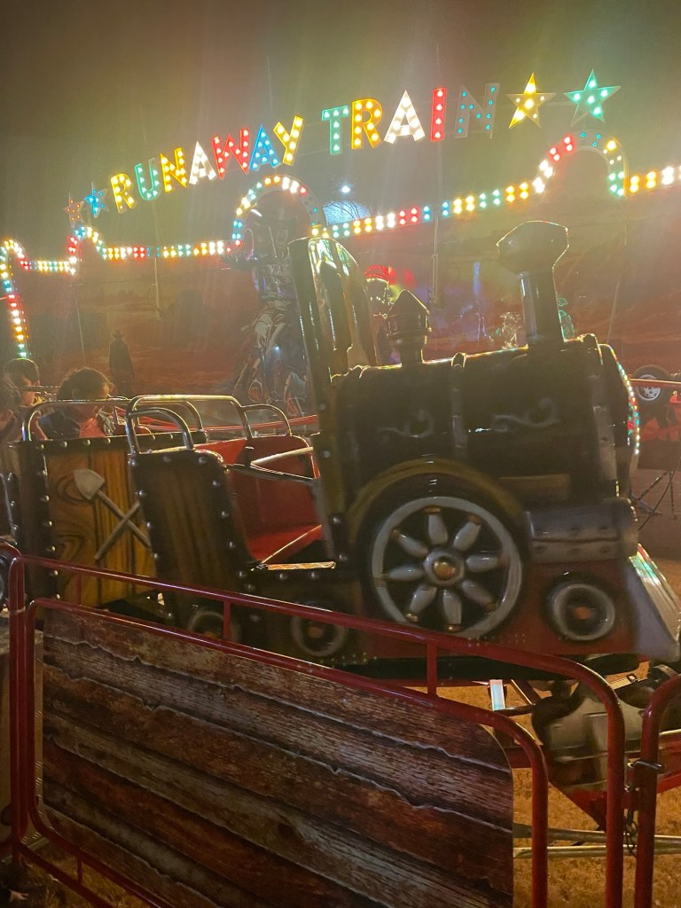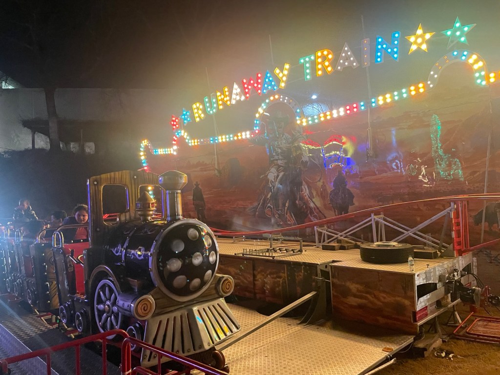 We attended the Lights of Life, a well known light display at Life University in Marietta, GA near Atlanta and they had a roller coaster. In addition to lights they also have a parking area with attractions that this year included a kiddie roller coaster called Runaway Train. It was the most simple coaster you could possibly imagine, but a true coaster nonetheless and the best surprise Christmas Eve gift.
