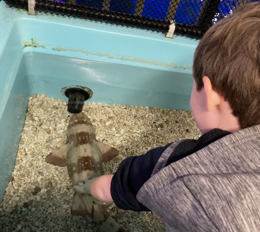 Next, the guides will open a couple of small tanks adjacent to the railing which hold small white-spotted bamboo sharks that you have the opportunity to touch and pet. These sharks are basically completely still and totally non-threatening. This makes for a great picture opportunity as well as the only thing better than a story about petting a shark is a picture of you doing it. While others in the group are petting the shark, you can ask questions, gaze into the tank or look at several of the displays and posters they have in the area.
