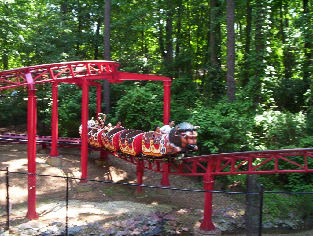 If you visit Six Flags White Water you’ll notice a large building sharing the parking lot that appears largely vacant. This building was actually part of American Adventures, something akin to a large family entertainment center or small amusement park that operated until 2010. This park has a really interesting history, having been owned by more than one theme park brand. The property is now used for training, HR, storage and the employee cafeteria, but at one time there were numerous rides here and even a small roller coaster. White Water is very much a “water park in the woods” and American Adventure was similar as in the forest between that building and the water park once sat a pretty amazing little amusement park called American Adventures.